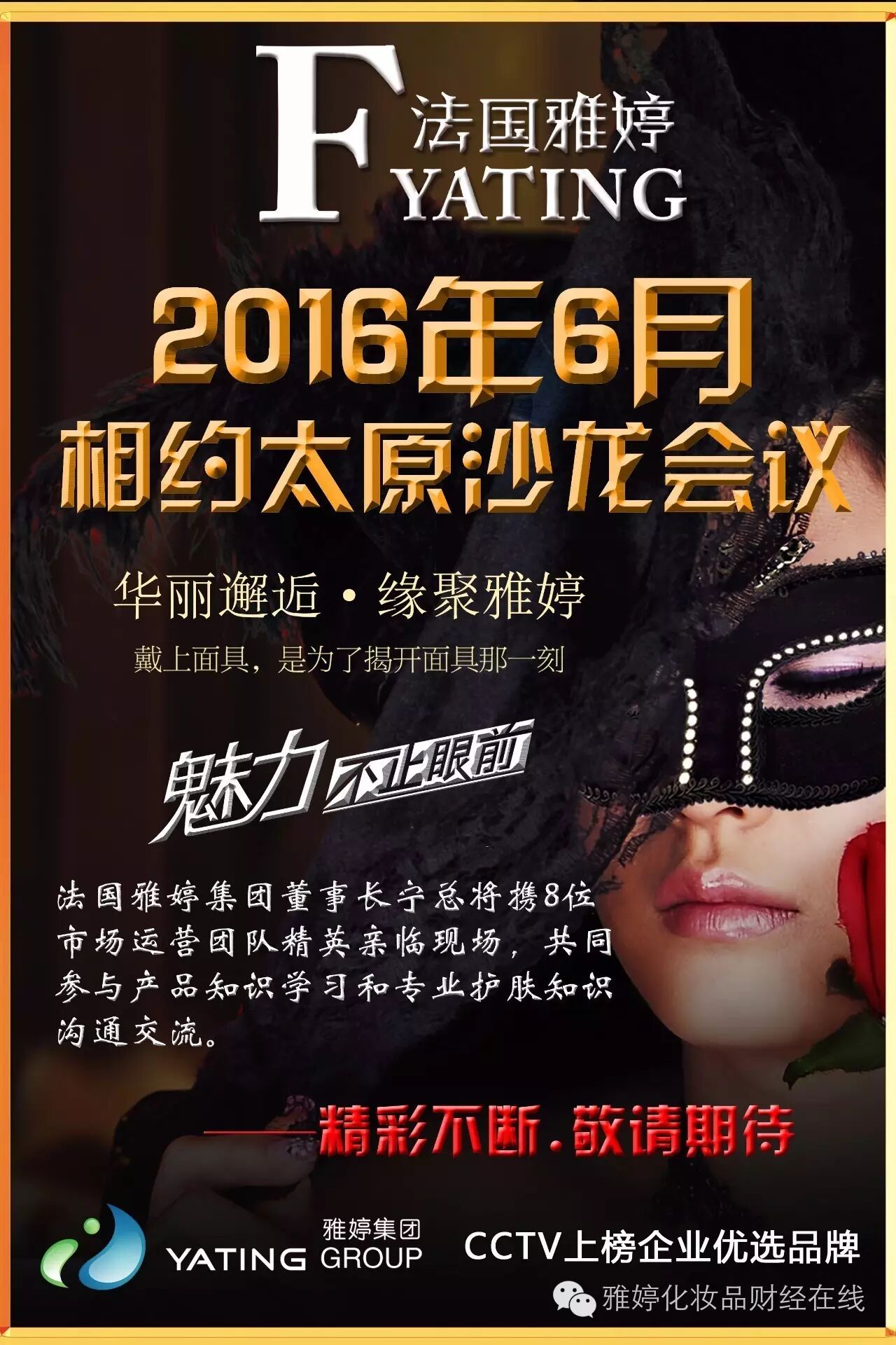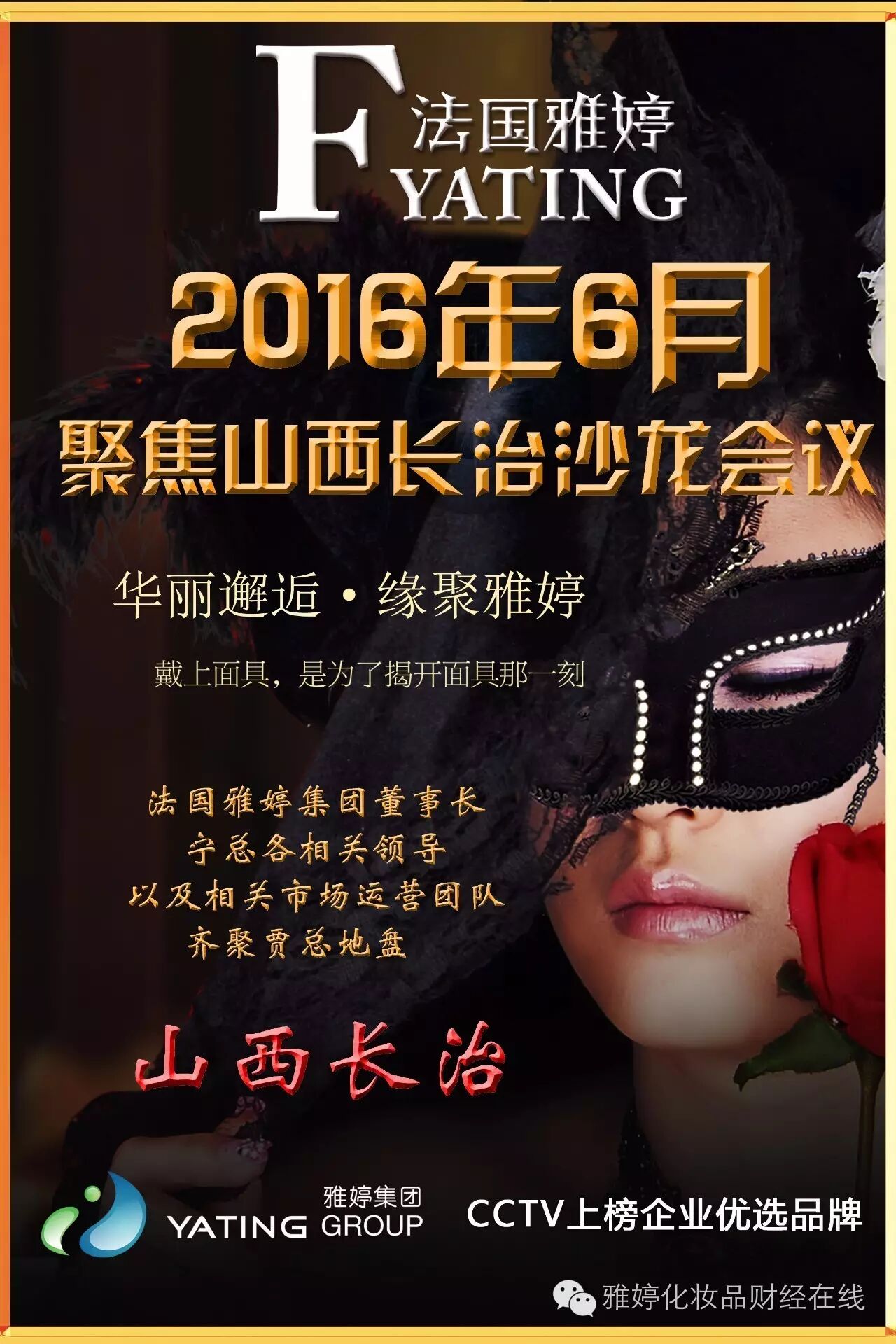 六月聚焦山西·长治沙龙会议!山西贾总、马总即将迎来:法国雅婷集团董事长宁总,各相关领导以及雅婷集团相关市场运营团队!山西地区第一场大型沙龙会议即将扬帆起航,即将引爆整个山西地区雅婷集团市场发展!