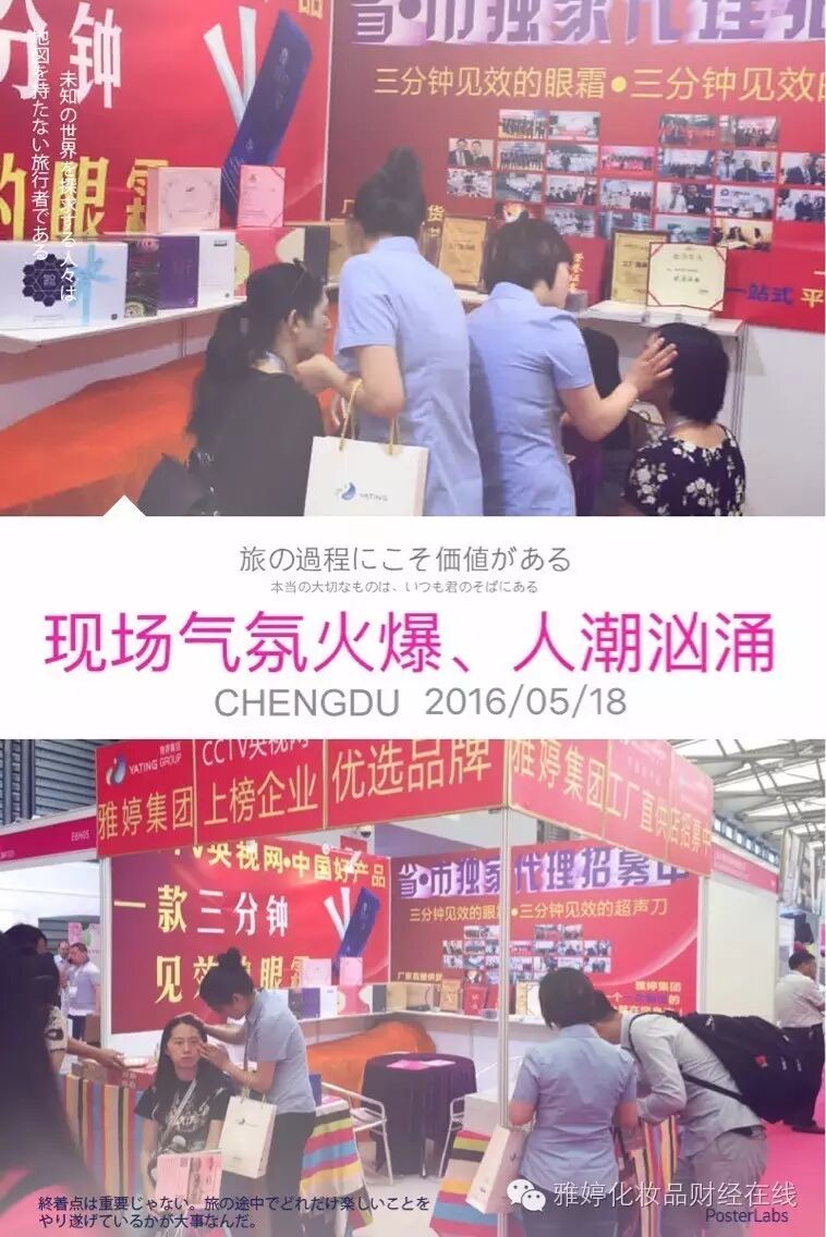 如果你是了解行业新趋势,那么现场产品一定能让你抓狂,赖着不想走。三分钟见效的眼霜、超声刀、二秒钟渗透的肌底液、特色面膜、补水神器玻尿酸原液.....雅婷集团CCTV央视网上榜企业,最新最流行的技术现场惊爆你的眼球!