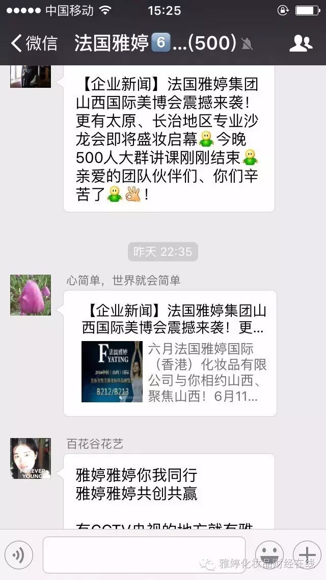 雅婷化妆品财经在线讯:昨晚法国雅婷集团谭总工程师“护肤有知识,护肤需技巧!教你做漂亮护肤达人”“教你辨别有害的化妆品”相关课程,一触即发般火热引爆了整个培训现场!团里各种抢购信息、 “鼓掌的”、“ 献花的” 络绎不绝!