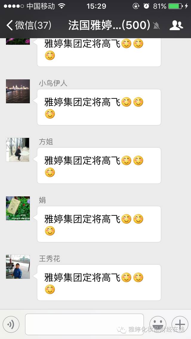 诚挚邀请全体雅婷集团的合作伙伴们,多多转发本条新闻,以及财经在线其它信息!转发别人就是在转发自己,同时也是在提升自己的实力,因为我们都是一家人!2016年我们将共创奇迹,共创辉煌!