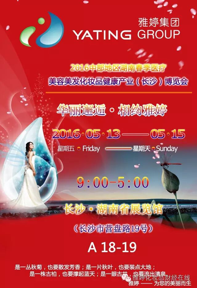 雅婷集团作为老牌的参展单位,即将在明日开幕的雅婷集团全国市场5月份招商第3站——湖南美博会上扩大展览规模!在此基础上,其展位布置将更加科学,多年的经验将使得展会每个细节都可以做到尽善尽美,给现场来宾更好的参观体验!所有长沙参会人员全部将今日到达,雅婷集团与你湖南美博会A18-19不见不散!