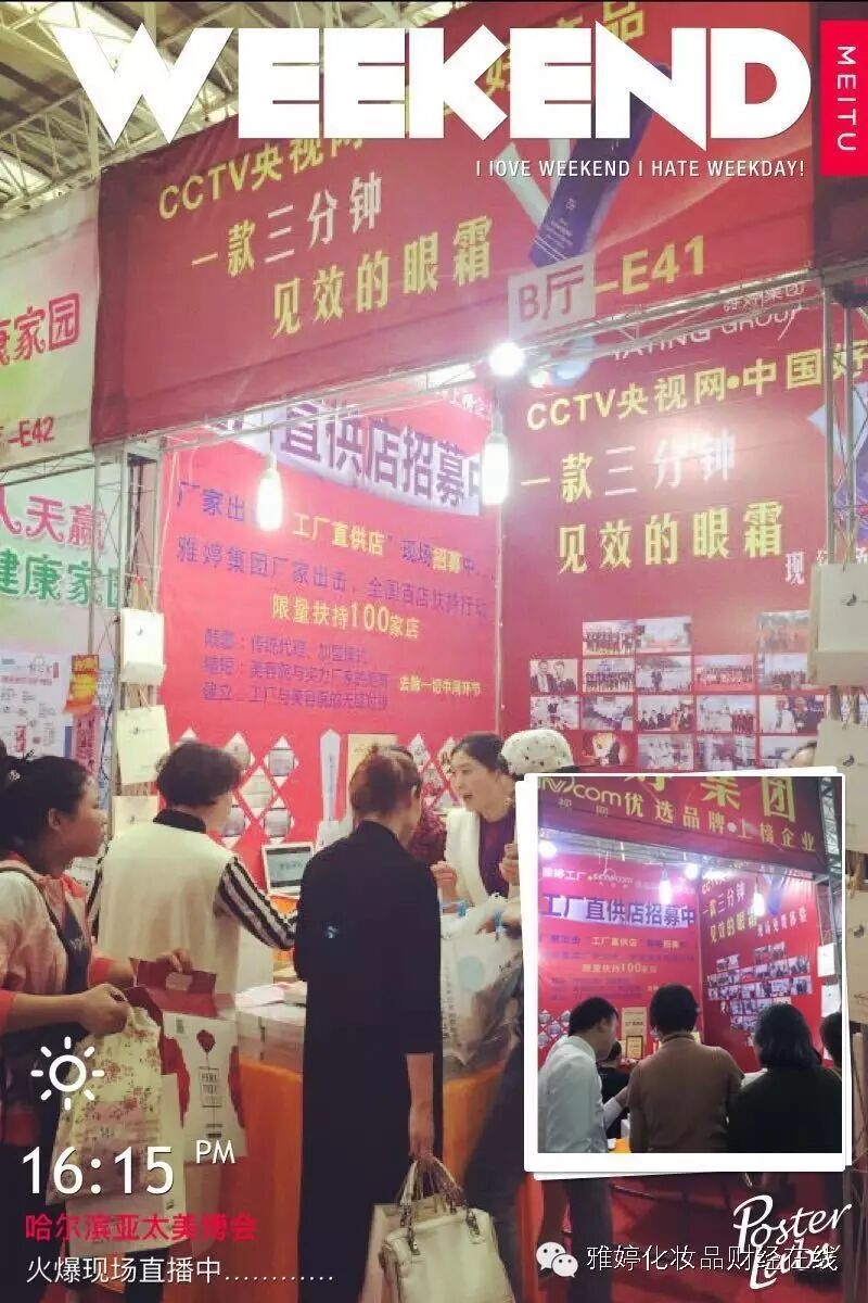 2016年五月,雅婷集团™全国六场美博会,辗转全国多个城市!今日进入哈尔滨亚太美博会第二日,雅婷集团全线产品全面出击,现场专业的中国好产品体验以及专业美丽导师的讲解,受到了哈尔滨现场客户喜爱!雅婷集团B厅E41展位展台、过道几乎全被人海掩盖,走在人潮中,寸步难行!雅婷展馆成为毫无疑问的典型,在火爆程度上绝不亚于展馆中任何一处!