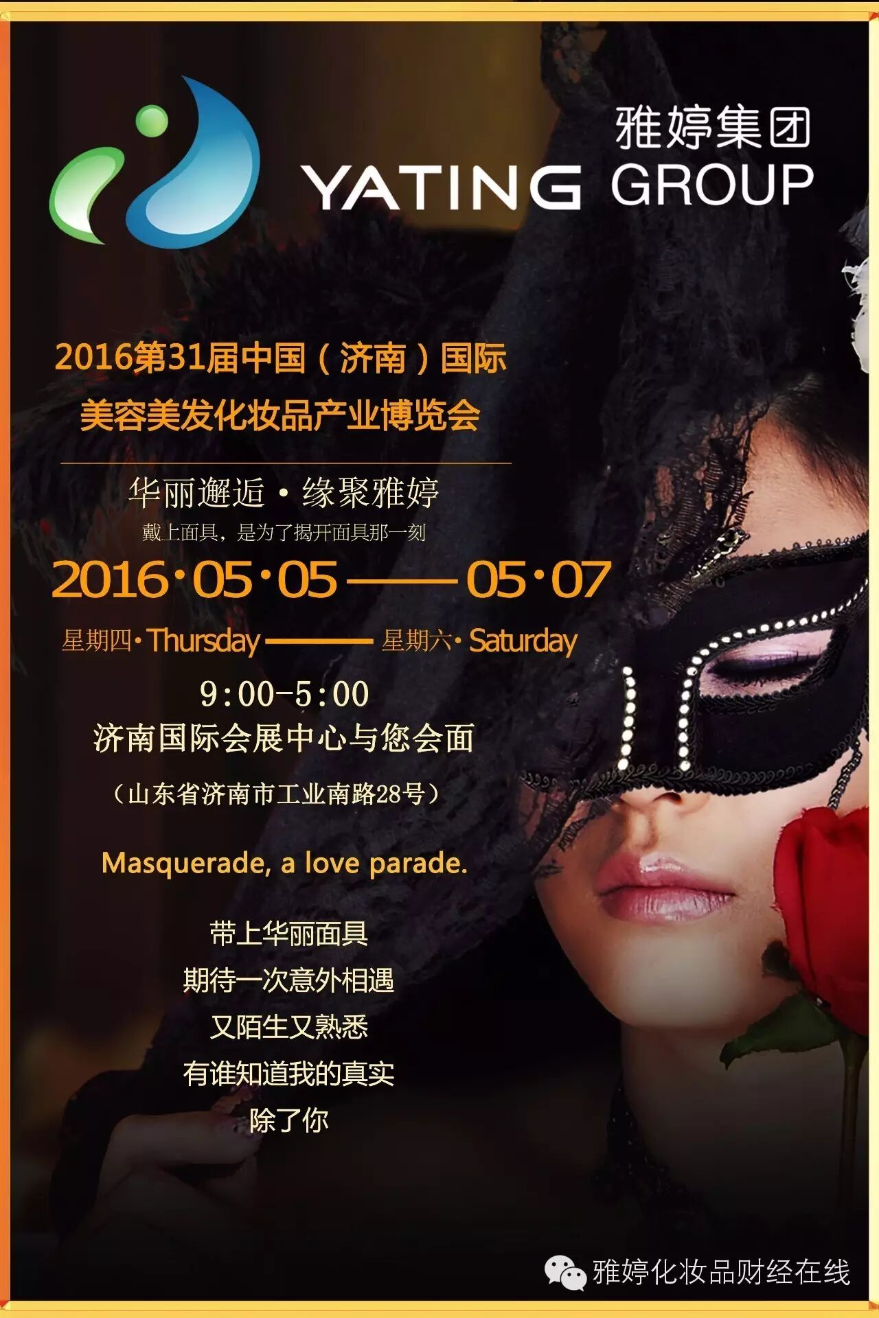 刚刚过去的2016四月,雅婷集团为成千上万人提供了专业培训和三大品牌系列产品体验,五月雅婷将延续精彩,全面出击再次转战全国!集团运营部、市场部将兵分两路,转站济南、哈尔滨、湖南、上海、武汉等地!
